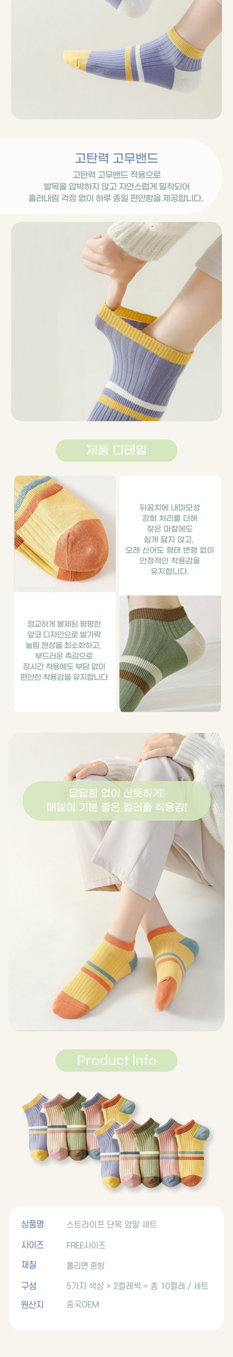 Korean Pastel Stripe Ankle Socks – 10-Pair Set